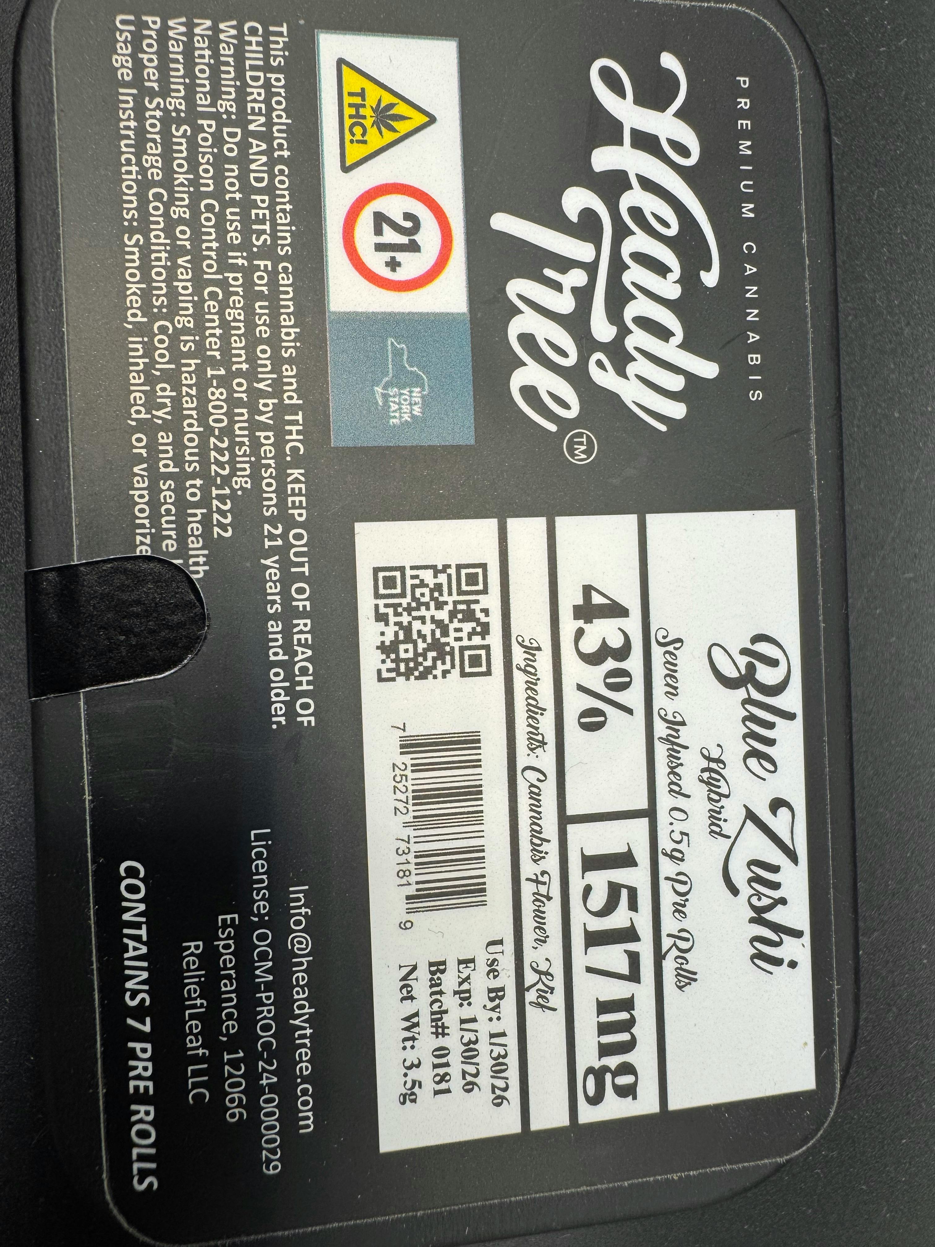 Heady Tree - Blue Zushi - Kief Infused Shorty 7pk - .5g