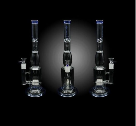 15 inch Alpha glass clear blown double perc water pipe