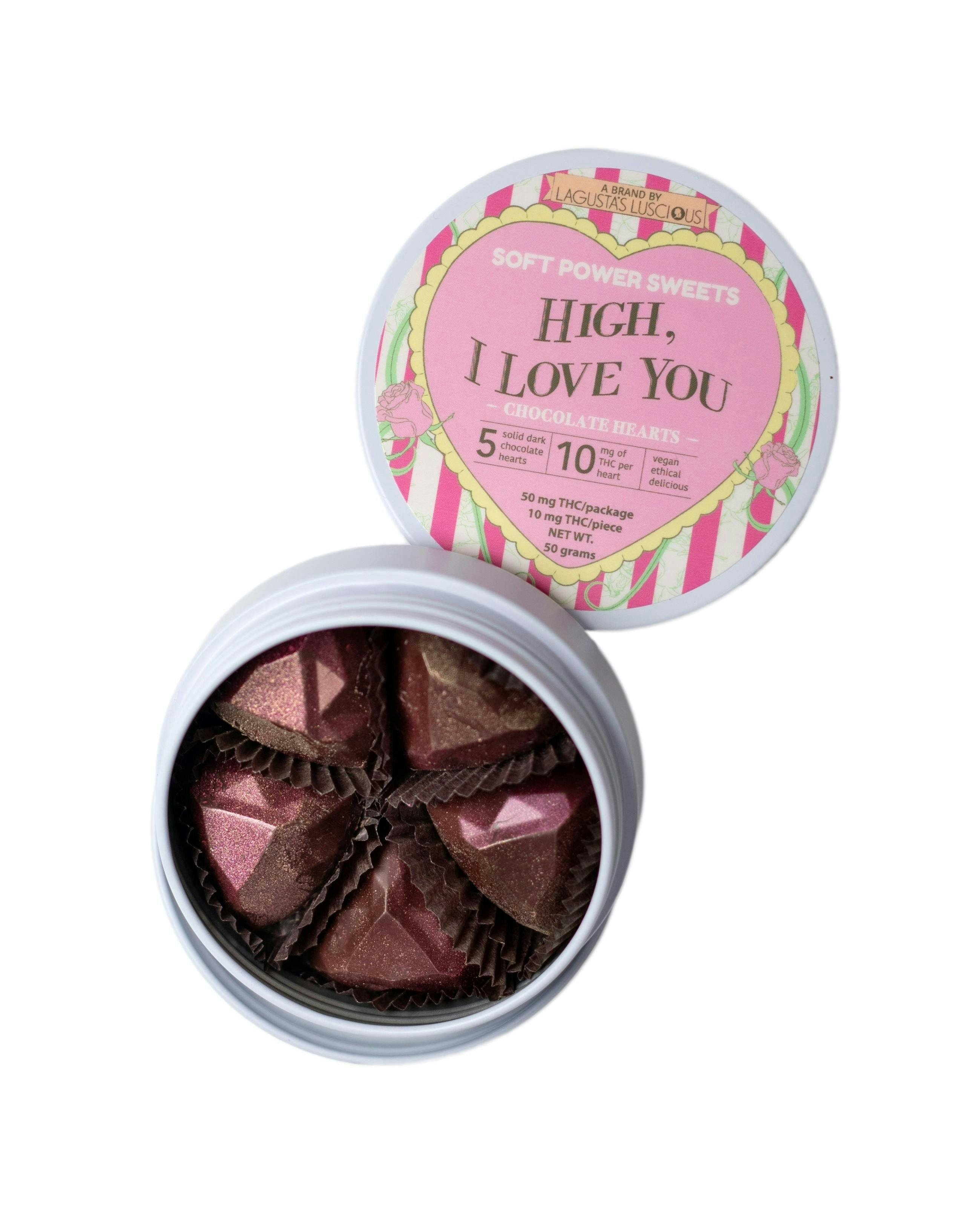 Soft Power Sweets - "High, I Love You" - Chocolate Hearts - 5pk - 50mg