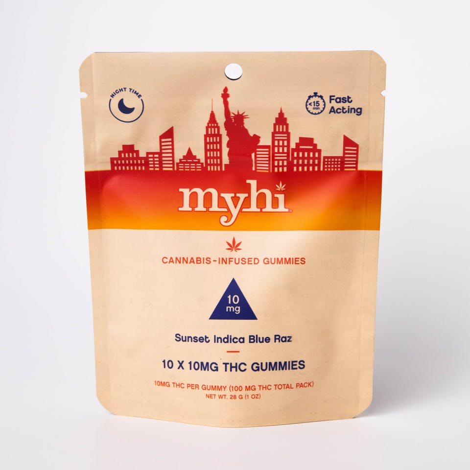 MyHi - Sunset Indica Blue Raz - Live Rosin Gummies - 100mg