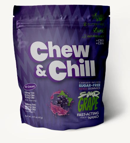 Chew & Chill - Sour Grape 5:1:1 THC:CBN:CBD (Sugar Free) - Live Resin Gummies 10pk - 100mg