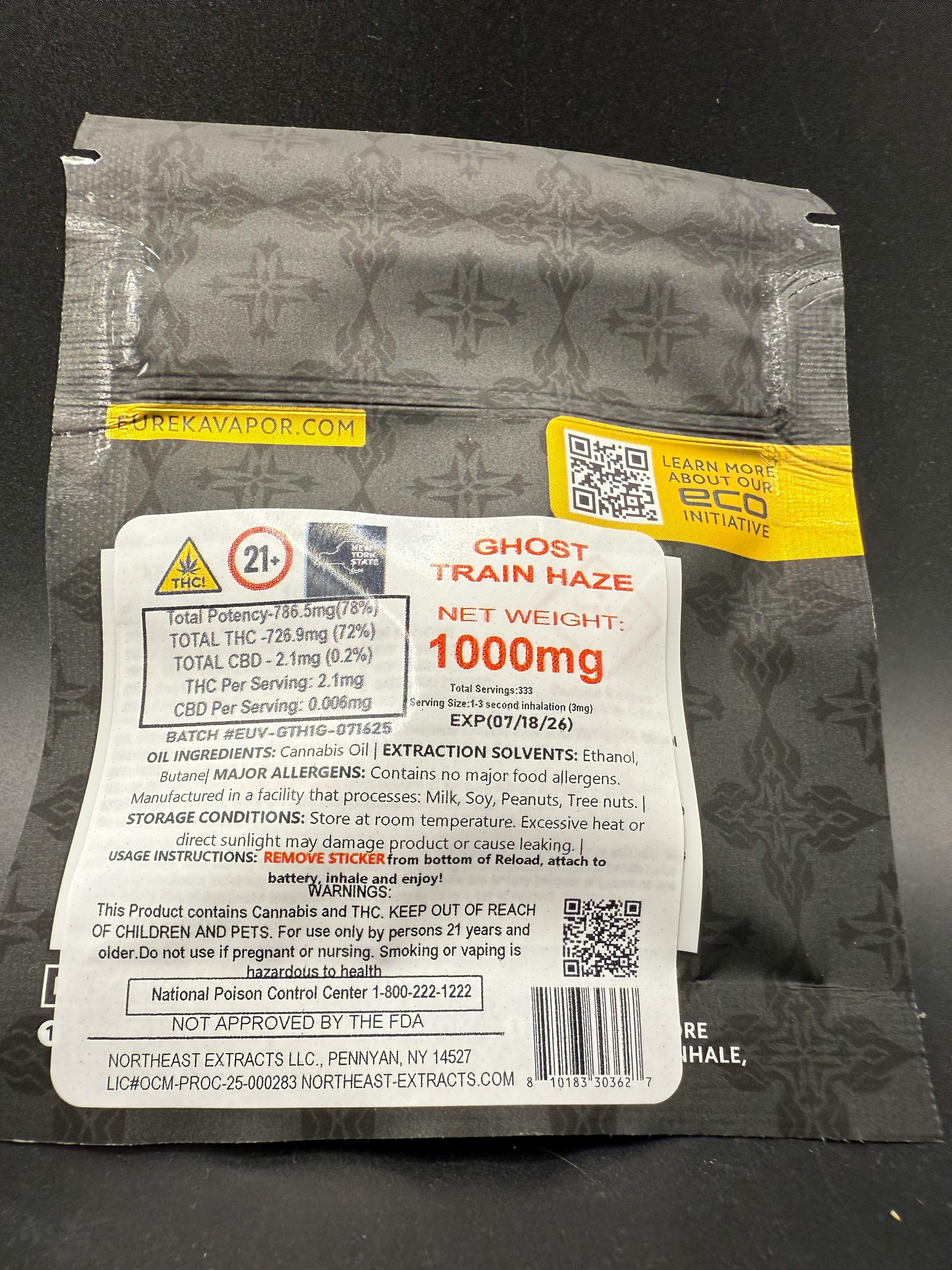 Eureka - Ghost Train Haze - Live Resin Vape Reload - 1g